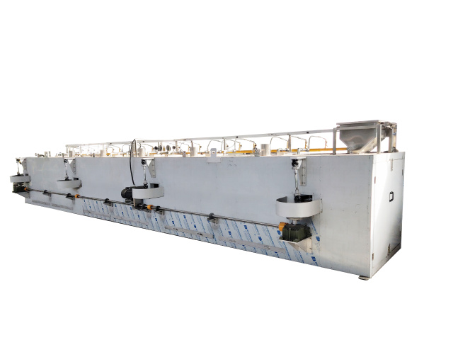 全自動平面回轉烤爐主要用于堅果炒貨及籽類產品裹衣裹粉后的烘烤加工。采用直燃式加熱方式,熱量直接作用于食品上,烘烤香味更濃郁,并通過設備的搖擺避免食品粘連變形。具有烘烤口味色澤優良, 沒有污染等特點。
